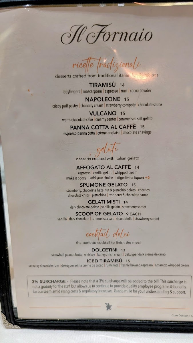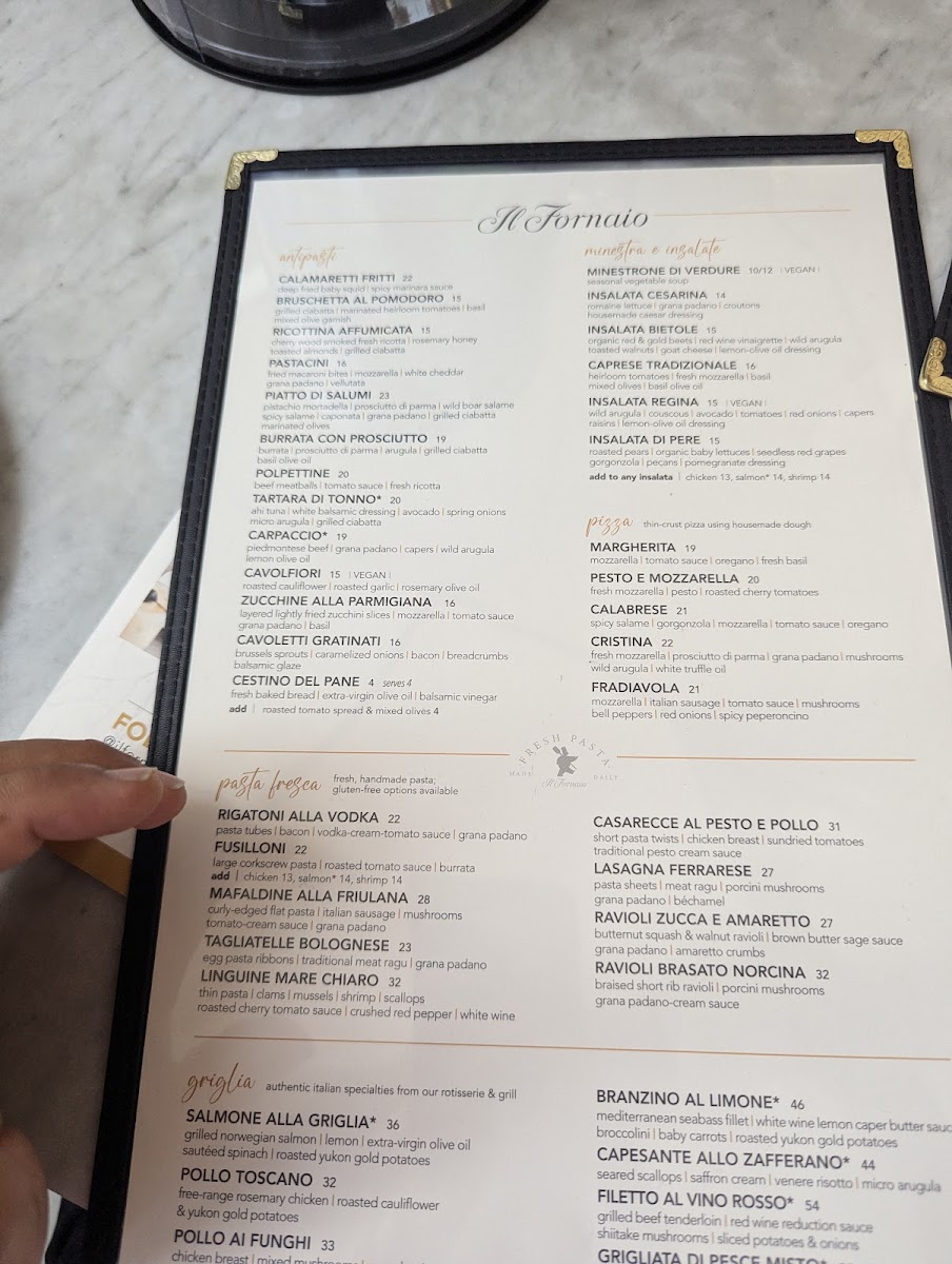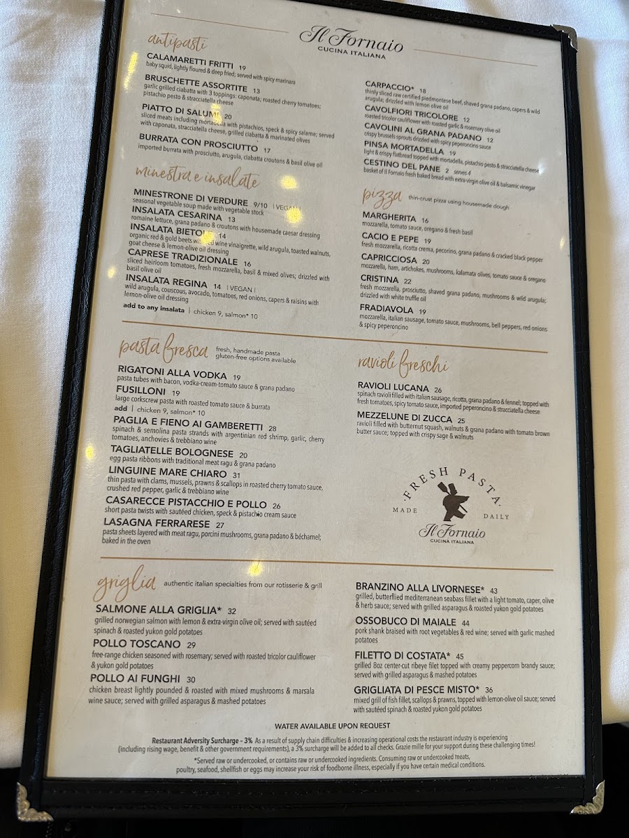 Features Salmone alla Griglia* & includes Insalata Cesarina, Rigatoni alla Vodka, Roasted Potatoes, Seasonal Vegetables, Freshly Baked Bread & Tiramisù *Please note, this item is not available on 11/27/24 or 11/28/24.